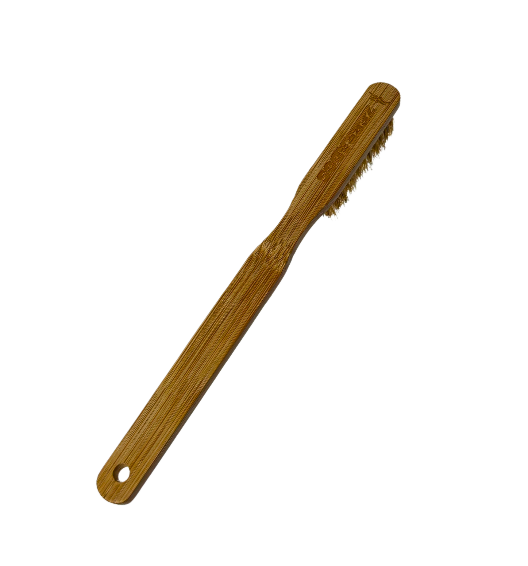 Cepillo de escalada Duna Zebrados de madera diseñado con cerdas de alta densidad ideales para eliminar restos de magnesio y suciedad en presas de rocódromos y roca natural. Cepillo básico, práctico y funcional.